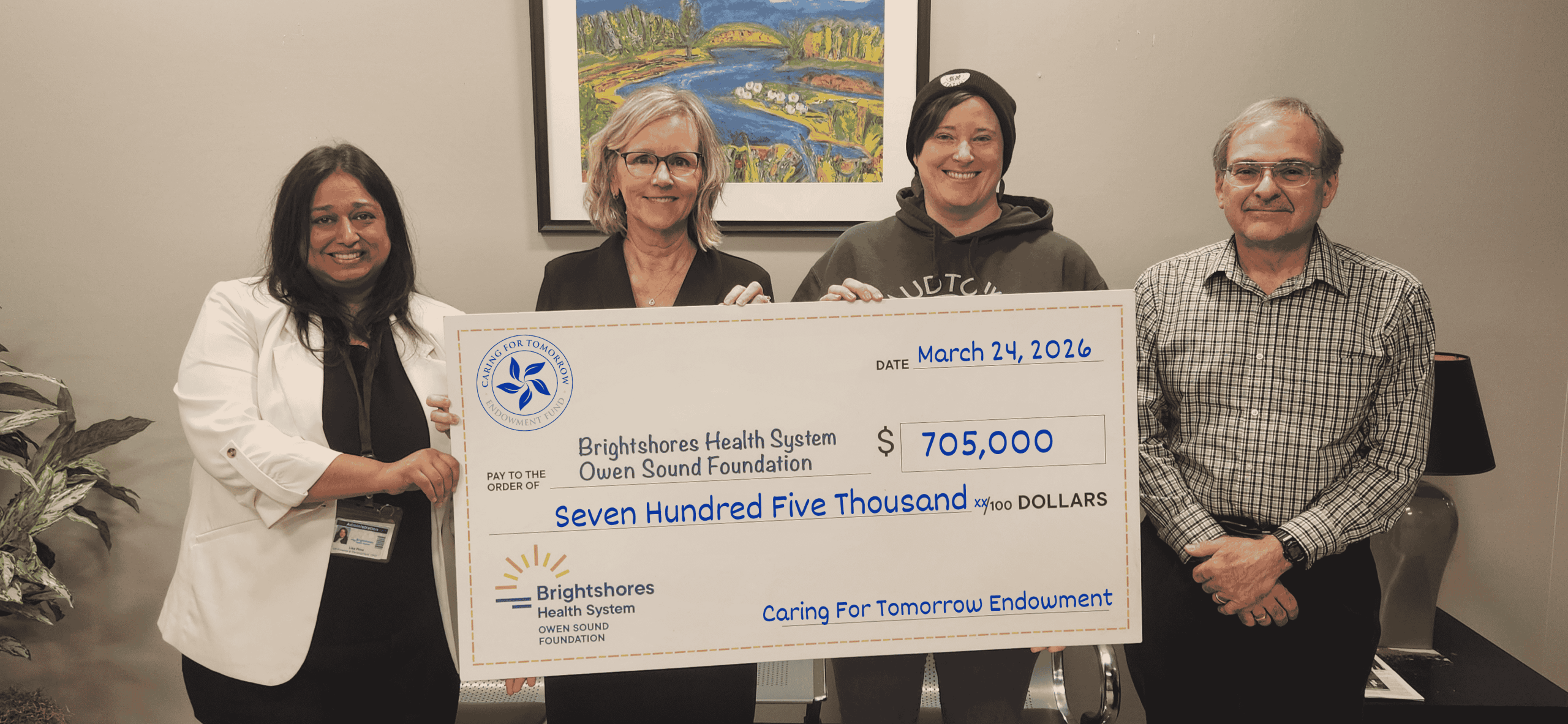 - Photo Caption: Members of the Foundation’s Investment Committee present a cheque to Lisa Pires, CFO, Brightshores Health System, for the Fund’s income in fiscal year 2025-2026.